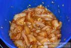 - Mäso nakrájame na rezance a pridáme sójovú omáčku, worcester, zázvor, korenie piatich vôní, prelisovaný cesnak, bielok, med, solamyl, 2 lyžice bieleho vína a premiešame. Necháme aspoň hodinu marinovať, ideálna doba je okolo troch hodín. Otestovali sme marinovanie 48 hodín s úžasným výsledkom - mäso bolo hotové za polovičnú dobu a veľmi krehké.