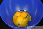 1. Do vhodnej misy dáme vajcia, cukor a ušľaháme.
