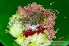 Ingrediencie premiešavame vždy od dna nahor a veľmi opatrne, aby nám nevznikla skôr kaša ako šalát.|