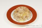 - Necháme pískať asi 50 minút, ale ak by bolo mäso tvrdé, dáme znova variť. Vývaru by malo byť aspoň 1/2 litra. Ak je ho málo, potom pridáme vodu a i s mäsom necháme prejsť varom.