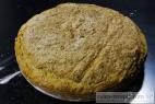 - Urobte si zmes vody a soli - asi na 50 ml vody 1/2 lyžičky soli. Touto slanou vodou potierajte budúcu kôrku. Čím hladšia, tým menej prasklín. (Tie sú však na chlebe to najlepšie ...) Potom ešte posypte drveným kmínom, prípadne slnečnicovým semienkom a tiež sa nám osvedčilo posypať budúcu kôrku jedným rozdrveným "knekebrotom" ...