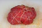 - Plátky oviažeme niťou tak, aby náplň nevyliezala. Niť postupne uťahujeme.