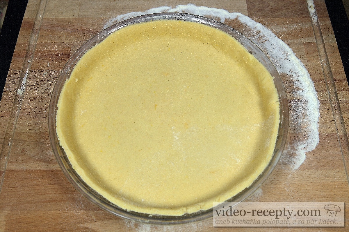 7. Valčekom urobíme placku, ktorá je trochu väčšia ako forma. Cesto natiahneme na valček a preložíme na formu.