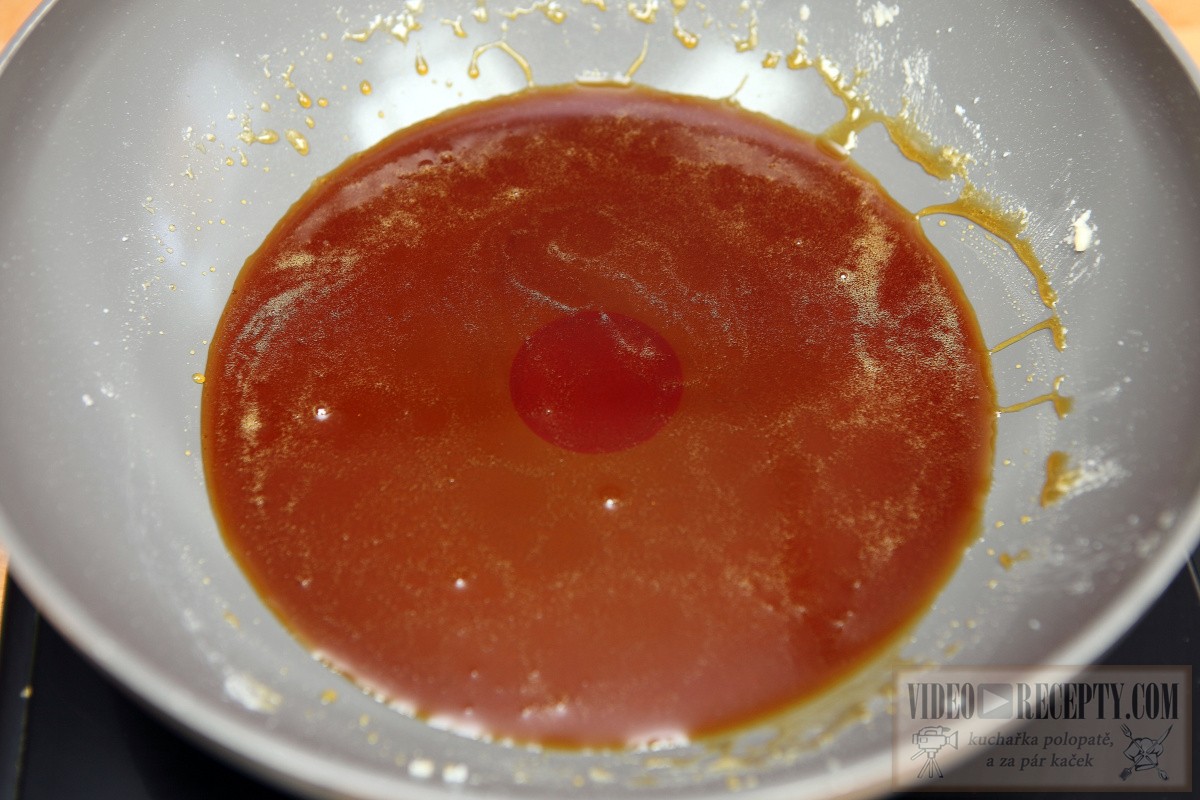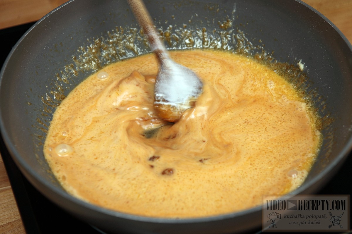 - Na kvalitnú panvicu nasypeme 200 g cukru a pridáme asi 3 lyžice vody. (20 ml) Pri 160°C miešame, kým nám nevznikne karamel. Potom pridáme 100 g masla, 200 ml šľahačky a miešame do zhustnutia.