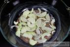 - Zapekaciu misu vytrieme kúskom masla, na dno naukladáme cibuľu, posypeme drvenou rascou, naukladáme kúsky mäsa, opäť trochu posypeme rascou a trochu osolíme.
