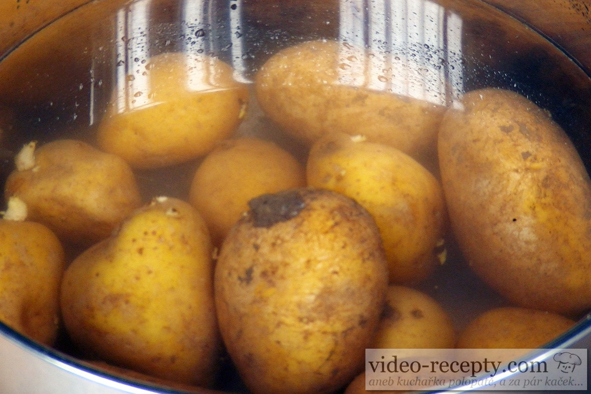 1. Rybie karbonátky s cibuľou zahájime uvarením 500 gramov zemiakov v šupke do mäkka. Ak si nie ste istí, ako na to, tak sa pozrite na videonávod TU. Potom ich necháme vychladnúť a odstránime šupku. Šupka sa odstraňuje najlepšie, keď sú zemiaky trochu teplé.