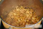 - Keď je mäso naozaj mäkké, tak pridáme kapustu do hrnca a povaríme ju asi 10 minút. Tekutinu doplníme na konečné požadované množstvo omáčky.