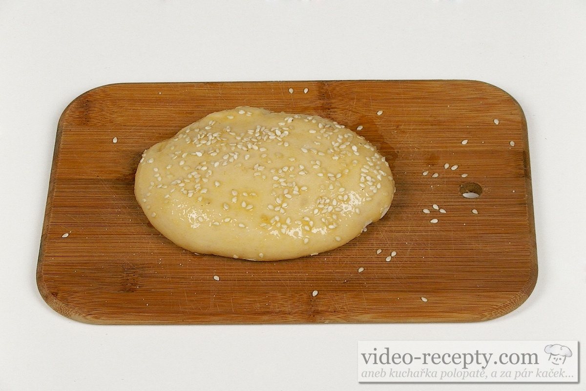 - Cesto v tvare žemlí necháme asi 15 minút nakysnúť, a potom je natrieme rozšľahaným vajíčkom. Posypeme ich hrubou soľou a sezamovým semienkom.