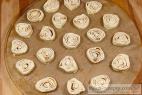 - Kolieska poukladáme na papier na pečenie a natrieme ich rozpusteným vychladnutým maslom. Posypeme ich cukrom a dáme do vyhriatej rúry.