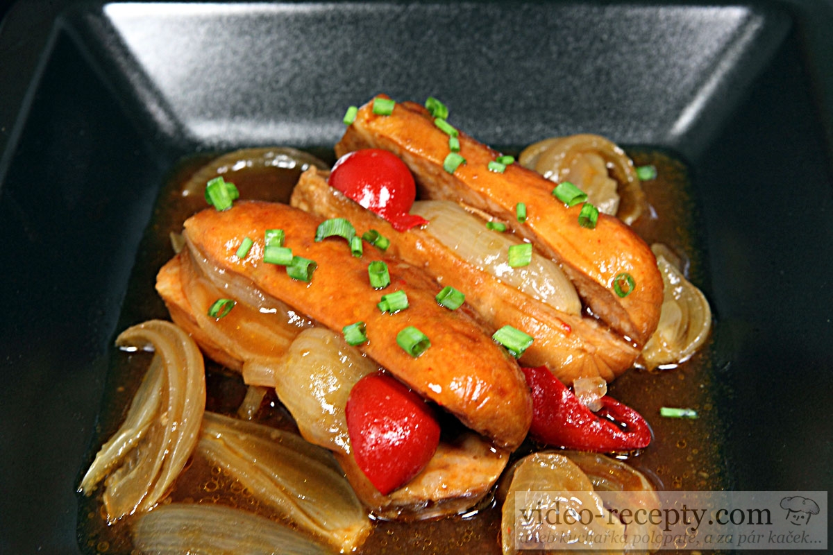 - Špekáčiky v pekáčiku zasypte asi 1 strednou cibuľou.
