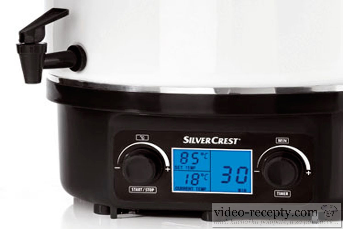 Úplne senzačný je na zaváranie elektrický zavárací automat, kde nalejeme vodu, nastavíme sterilovaciu teplotu a dĺžku zavárania. Automat sám už potom dvíha teplotu na nami nastavenú hranicu, a ako ju dosiahne, začne odpočítavať čas, po ktorom sa sám vypne a je hotovo - viď foto.