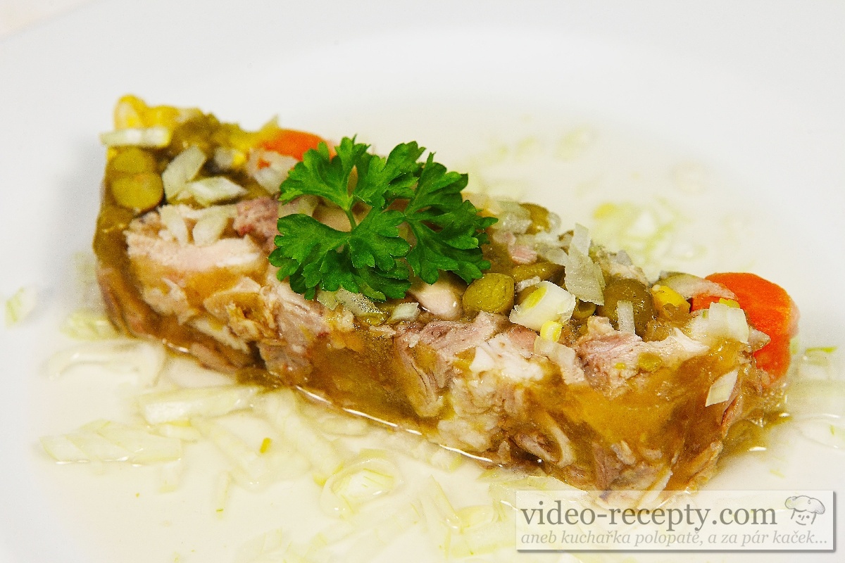 - Všetko zalejeme chladnúcim vývarom, ktorý prípadne podľa chuti dosolíme a necháme najskôr v chladnej miestnosti a potom v chladničke stuhnúť.