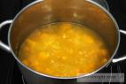 - Restujeme asi minútu, potom zalejeme pripraveným zeleninovým vývarom a varíme do mäkka. To nám zaberie asi 20 minút. Môžeme tiež zaliať 1500 ml vody a pridať 3 kocky bujónu priamo k tekvicu.