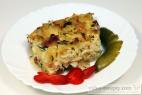 5. Potom je zcedíme a vložíme do zapekacej misy. Mäso nakrájame na menšie kúsky a tiež pridáme do misy.