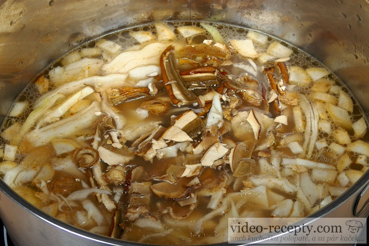 3. Čiastočne vychladnuté kúsky mäsa vložíme do mixéra, pridáme huby a rozmixujeme. Ak používame čerstvé, dáme ich 100 g, ak sušené, tak si do vody namočíme 10 gramov, čo je asi plná dlaň. Ak použijete naše známe huby, tak buďte pokojní - chuti to nijako neublíži.