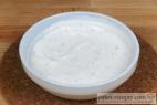 8. Medzitým si pripravíme misku, do ktorej vyklopíme 200 ml kyslej smotany {text:"Ak veľmi dbáte na štíhlu líniu, potom dajte kyslej smotany polovičné množstvo."}. Pridáme lyžičku korenia tzatziki a premiešame.
