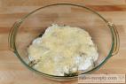 9. Ochutenú kyslú smotanu rovnomerne rozprestrieme na filety, zasypeme strúhaným syrom, poprášime veľmi decentne korením a zapečieme v rúre pri 180°C do zlatista. To nám zaberie asi 15 až 20 minút.